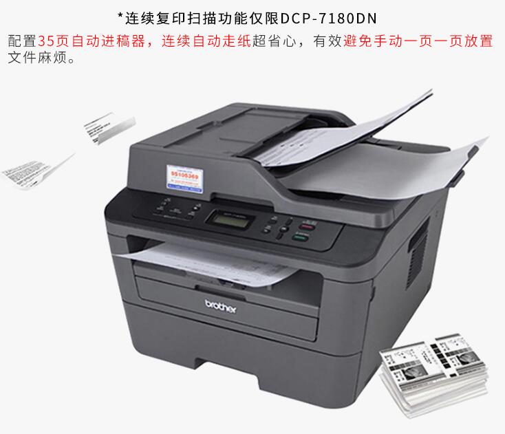 brother兄弟DCP-7080D/7180DN黑白激光打印復(fù)印掃描一體機(jī)三合一自動雙面高速打印A4家用辦公復(fù)印機(jī)打印機(jī)