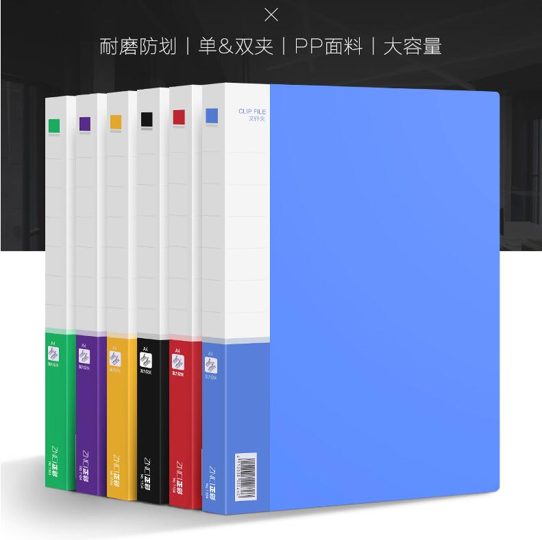 正彩文件夾辦公用品A4雙強力夾子資料夾板插頁冊功能單夾多層文件袋資料冊收納盒學生用板夾透明